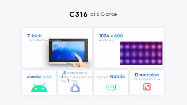 Soporta APP Android / Pantalla Touch Screen LCD 7" / WiFi / Punto WIFI / Bluetooth / PoE / SIP / 8 Entradas de Alarma / 1 Salida de Relé / Comunicación con App de Familiares / Administración 100 % en la Nube